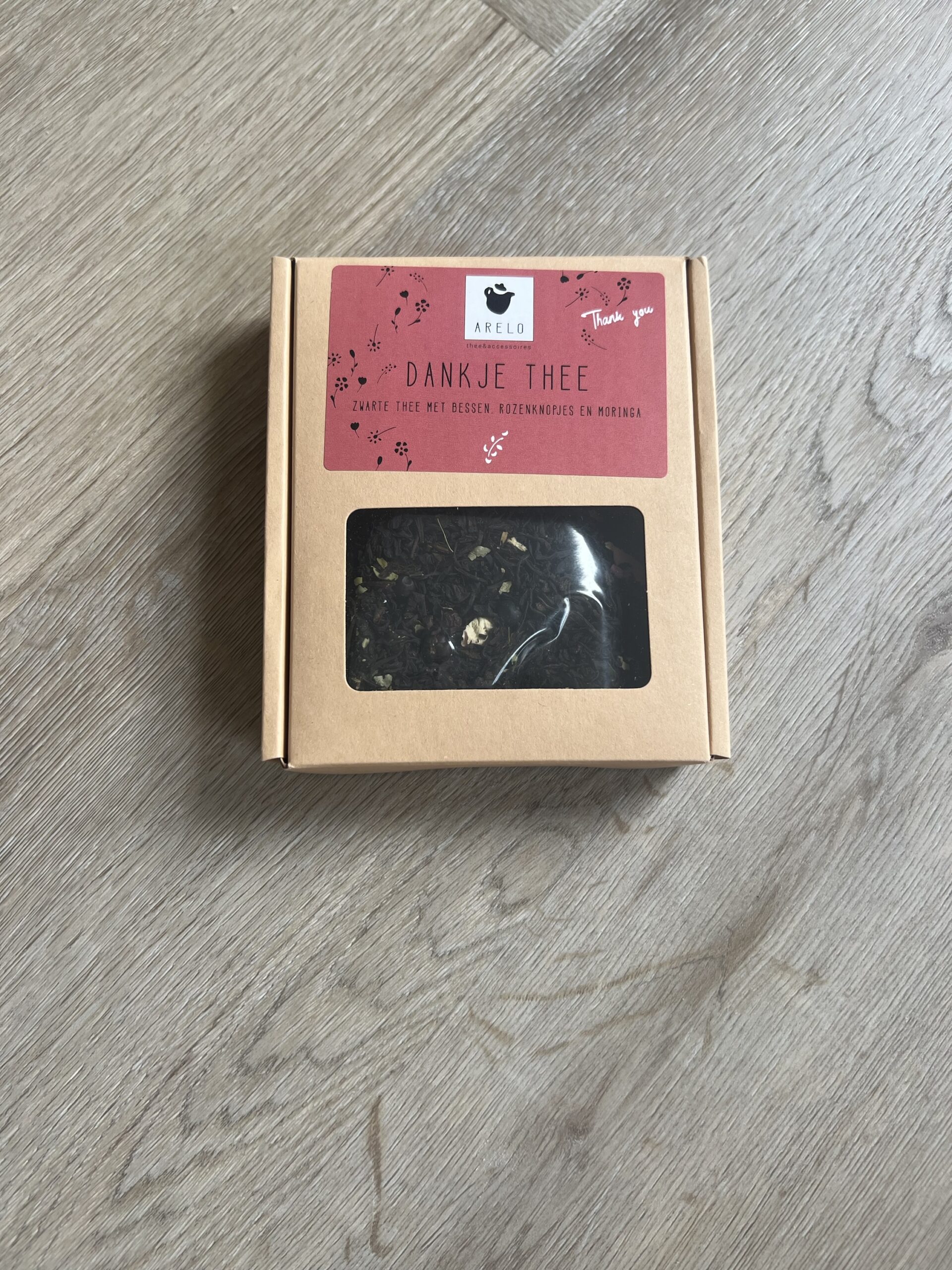 Wat dacht je van een lekker theetje als bedankje? Met deze speciale ‘dankje thee’ kun je op een originele manier je dank uiten. De intacte rozenknopjes en besjes evenaren een mooi bosje bloemen. Een origineel en heerlijk bedankje, speciaal voor jou, omdat je het verdient!